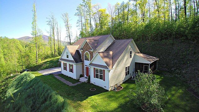 Wonderful privately located contemporary home with three bedrooms each with their own private bath plus a 1/2 bath, great kitchen with granite counters, formal dining room, breakfast nook, living room, family room with stone fireplace, loft sitting area, huge master bedroom suite, large open foyer, cathedral ceilings, hardwood & tile floors, large screened porch, Generac Generator, oversized garage, nice yard and huge year around views! Located between Sylva and Waynesville. Comes with 1.9 +/- acres. Additional adjoining 10 acres with a bold creek can be purchased.