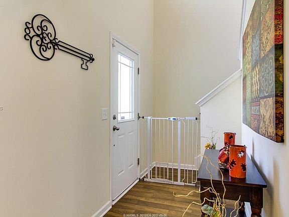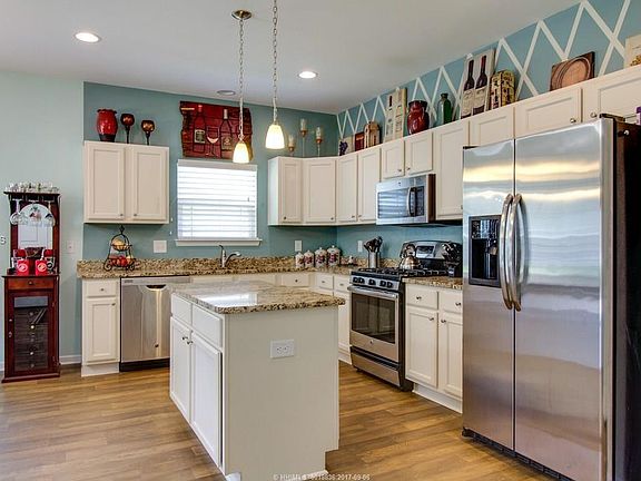 WHY WAIT TO BUILD? Gorgeous Beaufort model. All the bells & whistles! Trendy updated kitchen w/ granite & SS appliances. Light & bright w/ high smooth ceilings. Open flexible floorplan. Wood burning fireplace in great room. 1st floor bedroom can be used as an office, playroom or family rm. Spacious fenced yard overlooking lagoon. 3 generous bedrooms upstairs. Updated bathrooms with granite. So much storage! Great amenities including miles of leisure trails. Zoned for May River HS. 20 mins to Savannah, HHI & Beaufort. 10 mins to Old Town Bluffton. Low HOAs. WHAT'S NOT TO LOVE? WELCOME HOME!