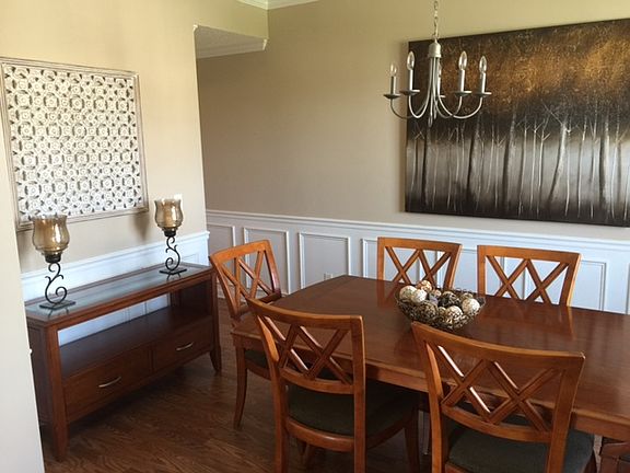 Large home with open floor plan has all the space you need! Main level has open living room/den area with gas log fireplace and hardwood floors. LR open to gourmet kitchen with stainless appliances, vast granite counter tops, tons of cabinets, and island.. Formal dining room, office and half bath also on main level. Upper level offers five bedrooms, full bath, and laundry room with storage and washer and dryer included. Master suite with tray ceiling and ceramic tile bath with garden tub, and double sink vanity. Level, fenced back yard with deck. Two car garage with storage. Neighborhood pool access. Two pets max. This home is offered unfurnished. Furnishings pictured not included. Amenities: Large Fenced Back Yard, Two Car Garage, Office/Study, Gas Logs, Stainless Appliances, Ceiling fans, Security System, Neighborhood Pool, Washer/Dryer Tenants responsible for lawn care and all utilities- gas, electric, water, sewer, trash/recycling, and internet. Rental Terms: Rent: $2,700 Application Fee: $50 Security Deposit: $2,700 Available 2/1/21 Pet Policy: Cats allowed Dogs allowed