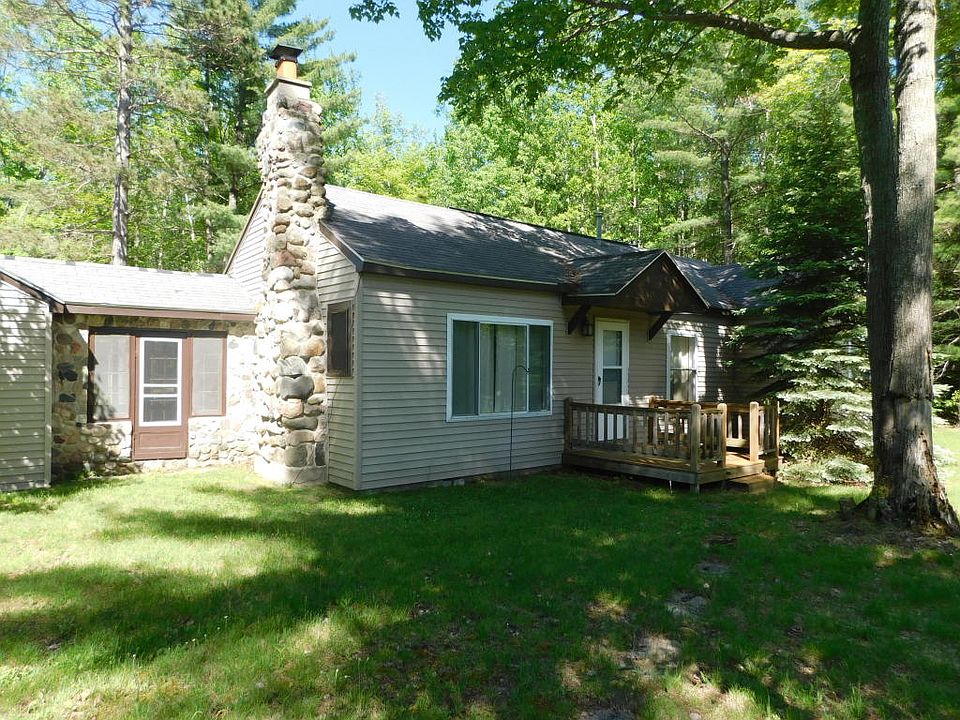 CABIN ON 5 ACRES- 2 bedroom, 1 bath in Mio area, laminate floors, stone fireplace, vinyl siding and knotty pine interior sitting on 5. 26 wooded acres and close to AuSable River. 30x40 pole barn with water and electric with extra storage above. A-2650 $ 62,900