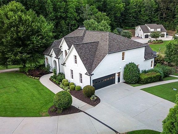 Tucked away on a completely level and secluded 4-acre lot in desirable Canton, Georgia, this extraordinary estate offers over 7,500 square feet of refined indoor–outdoor living, including a stunning main residence and a separate guest house with a 5-car garage. Perfectly located near Downtown Woodstock, Holly Springs, Blanket Creek Park, and top-rated schools, this home blends timeless craftsmanship with modern luxury. What truly sets this property apart is its rare, grandfathered status. Due to zoning changes in Cherokee County, properties of any acreage are no longer permitted to add a second dwelling like this. That means this estate offers something no other property in unincorporated Cherokee County can replicate today: a versatile, legally recognized additional dwelling unit (ADU). Whether used as an in-law suite, guest quarters, gym, office, or car-collector’s showcase, the possibilities are endless—and irreplaceable. The primary home offers 5 bedrooms and 5.5 baths, beginning with a dramatic two-story foyer and soaring vaulted ceilings. A custom steel front door opens to a light-filled floor plan finished with red oak hardwoods and premium detailing throughout. At the heart of the home is the expansive gourmet kitchen, outfitted with an oversized island, stone countertops, custom cabinetry, walk-in pantry, and professional-grade Viking and Wolf appliances. Flowing seamlessly into the living and dining areas, this space is perfect for entertaining. The luxurious upstairs primary suite is a private retreat, featuring vaulted ceilings, a spa-inspired bath with frameless glass tiled shower, soaking tub, dual vanities, and a large walk-in closet. Three additional bedrooms and two updated full baths complete the upper level. A spacious main-level in-law suite with its own en suite bath adds flexibility for multi-generational living. The daylight basement provides a bright, loft-style flex space ideal for a media room, game room, or gym. Outdoor living is enhanced by an oversized entertaining deck with covered lounge, stone fireplace, and a serene koi pond with waterfall. A long, private driveway leads to the detached 1,900 square foot guest house, which includes 2 bedrooms, 1.5 baths, a spacious living room, full dining area, and a modern island kitchen with quartz countertops and stainless appliances. The guest bath includes a frameless glass shower and granite double vanity. Below, the massive 5-car garage includes a half bath and workshop space, currently used as a private onsite gym. Perfect for car collectors, hobbyists, or anyone seeking versatile space. The expansive grounds not only provide privacy and multiple driveways for RVs, boats, or work trucks, but also enough room to build the pool of your dreams—making this the ultimate resort-style retreat. This remarkable estate delivers elegance, privacy, and a level of versatility that cannot be recreated anywhere else in Cherokee County. With its grandfathered ADU, 7 total bedrooms, 6 full and 2 half baths, and unmatched flexibility, this property is truly one of a kind. Schedule your private showing today to experience what no other home can offer.