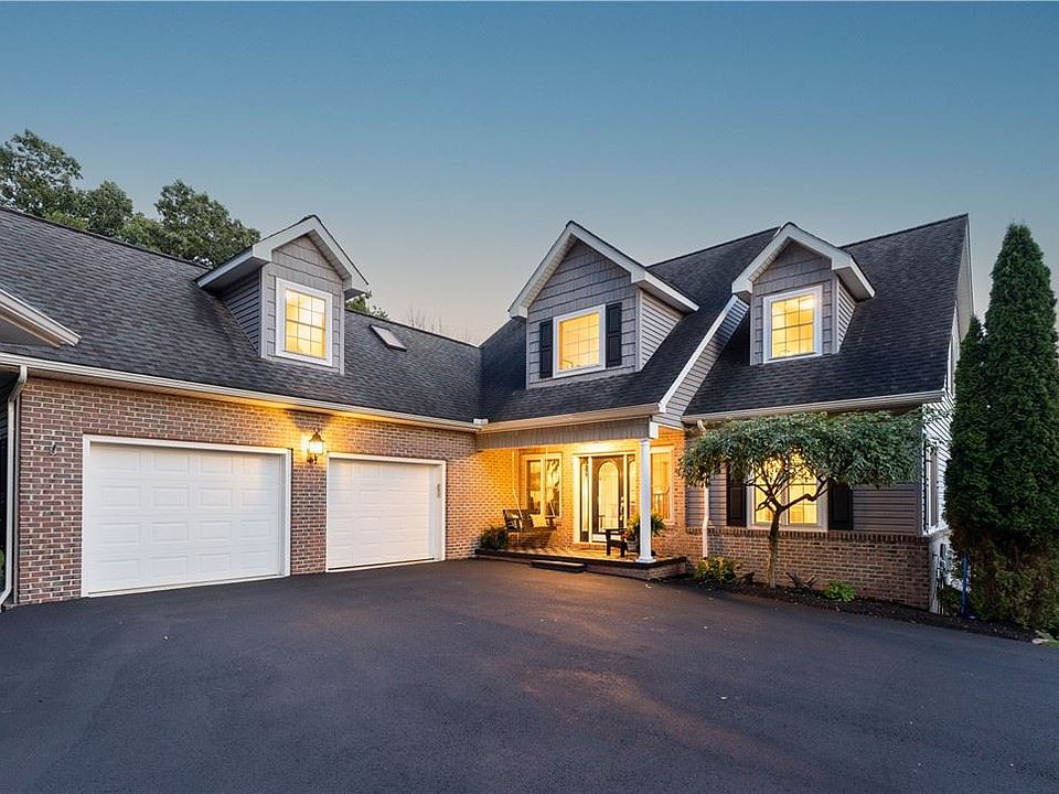 This stunning one-of-a-kind 4 BR, 3 1/2 bath home boasts year-round magnificent views of the Laurel Highlands! It is completely private, nestled on 20 wooded acres and is only minutes from town- perfect for the nature lover, hunter, or ATV rider! A newly paved switch-back driveway leads to a 2 1/2 bay detached garage & a 2-car attached garage. The 1st floor open design of this immaculate home features a custom kitchen and dining room/sitting room, and a laundry room. A 2-sided Kachelofen fireplace offers constant radiant heat. Floor to ceiling windows in the LR reveal the upper & lower decks. French doors lead to Master Suite with 2 walk in closets, double Vanities, spacious tile shower, private water closet & stand alone soaker tub. Unique Features include vaulted LR ceilings & 2nd Floor Balcony leading to 2 Bedrooms with walk in closets, bonus room leading to private office, and full bath with walk in closet. The walk out basement includes a 4th BR, Game room & Full Bath & Storage