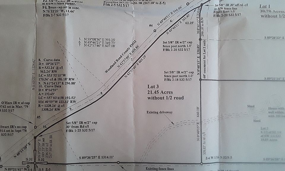 Surveyed 21.45 acres. Lot #3. Power close by, 2 wells, zoned 5 acre tracts off Woodland Rd.