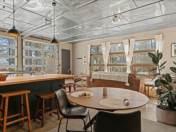 If you are looking for a unique property, look no further. This modern, airy home makes a cool mountain retreat, a perfect VRBO investment property, or an amazing full time oasis. As you drive up to this house & property you immediately notice this is no cookie cutter home. The large, predominantly glass garage door can be fully opened to enhance the feeling of truly living in nature. The open floor plan with exposed steel elements invites you to use the space in any way you can imagine. Stained & sealed concrete floors are quite inviting and cozy with radiant floor heat which is a real treat on a cool morning. In keeping with the minimalist style, the kitchen serves all your needs while still flowing seamlessly with the rest of the space. Up the open staircase you'll find the spacious bedroom and bathroom. Just off the main house is a finished, heated bonus space where you can set up your home office or gym, put a day bed for guests or store your toys! A new well was drilled in 2021, there is a 1000 gallon cistern and the septic is rated for 3 bedrooms which makes it easy to expand upon this already stellar haven! Owners have preliminary plans for an addition/expansion. The top-of-the-line metal roof is only 4 years old and requires little to no maintenance. With 5 acres to spread out and roam, you may find yourself spending more time out of doors than in, which will be easy to do with this very low maintenance home and property. This property is less than a mile to some of the best hiking and mountain biking trails in the county and only 20 minutes to the amenities of Durango and still it is a quiet and serene place to just...be!