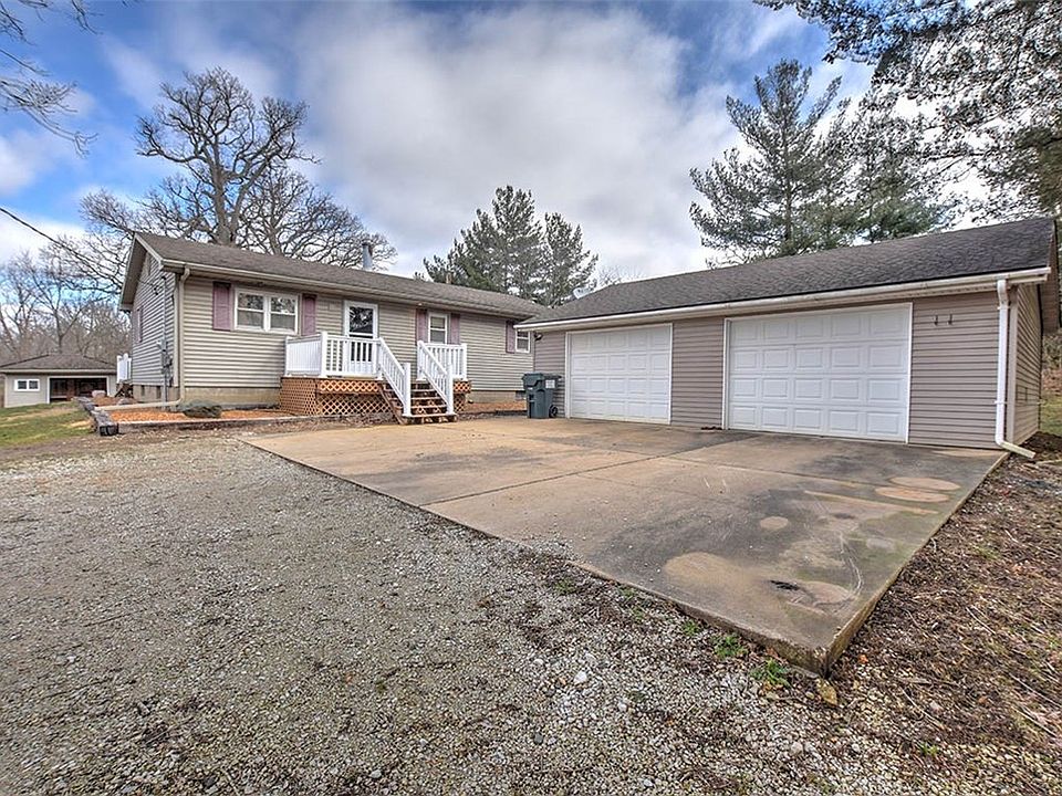 generously sized bedrooms, two full bathrooms, and a large living room & kitchen on the main floor. The Master Bedroom and Master Bathroom have been recently updated in 2020 with new flooring, paint, and bathroom appliances, including the Walk-In Shower, Toilet, & Custom Vanity. Downstairs you will find great bonus living space, a Custom Built Bar, an Indoor Jetted Tub, and a Wood Burning Fireplace. As well as a potential Fourth Bedroom, Large Laundry Room with Sink, and the third Bathroom with a Walk-In Shower. On the Exterior, you'll see a huge back deck over looking the timber, multiple sheds/workshops, and a huge 2.5 Car Garage with Heat, Compressed Air lines, and Plenty of Power & a Generator - a great work area! Take a look & see the potential!