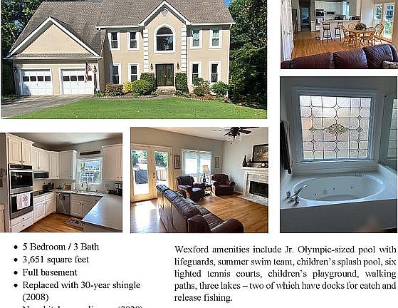• 5 Bedroom / 3 Bath • 3,651 square feet • Full basement • Replaced with 30-year shingle (2008) • New kitchen appliances (2020) • All A/C units replaced (2020) • All windows replaced (2020) • Newly renovated all bathrooms (2021) Wexford amenities include Jr. Olympic-size pool with lifeguards, summer swim team, children’s splash pool, six lighted tennis courts, children’s playground, walking paths, three lakes – two of which have docks for catch and release fishing. Large, flat backyard and kid friendly neighborhood Excellent schools: Sweet Apple Elementary (1.0 miles), Elkins Pointe Middle School (3.5 miles), and Roswell High School (1.2 miles)