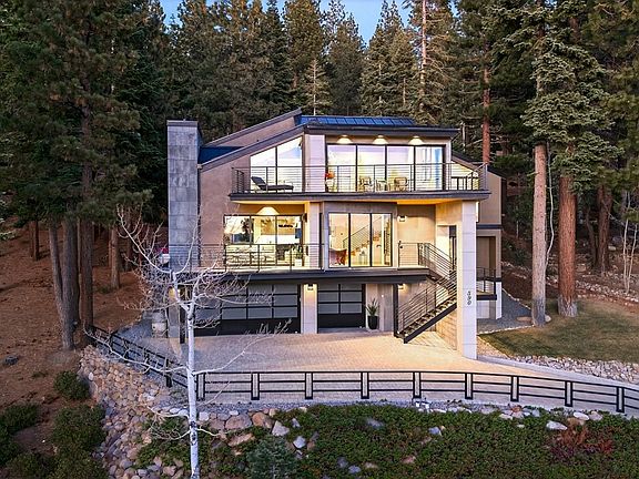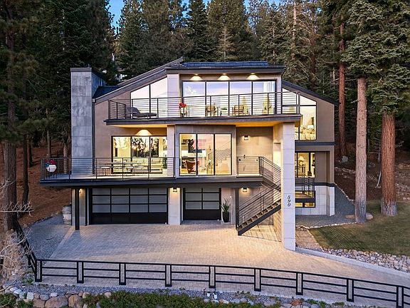 Tucked away on a quiet cul-de-sac and surrounded by multi-million-dollar homes, 590 Fallen Leaf Way offers exceptional lake views and refined modern living. Completely rebuilt in 2021 by The Ryan Group, the home features steel moment frames and a sleek, architectural design that balances warmth and livability. An expansive open floor plan centers around a gourmet kitchen with Dekton slab countertops, Gaggenau appliances, and a built-in coffee station, seamlessly connecting to the front patio with stunning lake views. A fully fenced, flat backyard provides an ideal space for entertaining or relaxing. The home offers multiple en-suite bedrooms, walk-in closets, and generous guest gathering areas with three gas fireplaces, perfect for hosting family and friends. Additional highlights include hydronic in-floor heating, central A/C, a heated driveway, and breathtaking lake views from nearly every room. A rare combination of privacy, craftsmanship, and Tahoe luxury.