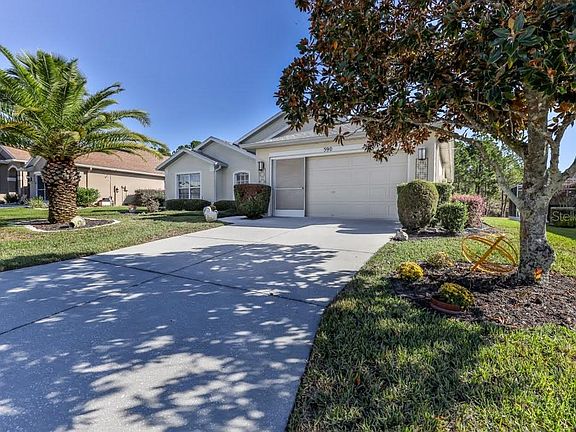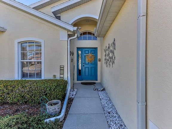 Peaceful View from this 2 Bedroom Plus Den Westbury model with over 1,600 sq. ft. of living space. Great Room is 20'x20' , Vaulted Ceiling, Tile Flooring and triple sliders to lead to large screened -in lanai with a beautiful open view of tall pines & Common Area. Upgraded 42'' cherry wood cabinets in Kitchen with Corian counters, Stainless Appliances & Plenty of Counter Space. Also, a Walk-In Pantry & breakfast bar that overlooks the huge breakfast nook. Large enough for formal dining. Large Master Bedroom features walk in closet, & of course the View. Master Bath has double vanities with cultured marble counters, large walk in shower. This split plan has front guest bedroom, and bath. Den can fit a sleeper sofa for guests or perfect for home office. Plant shelves, Transom Windows all add to the features of this home. Indoor Utility Room with sink, storage and a window lets in lots of light. Lovely mature landscaping. Two Car Garage with Screens. This 55 + Upscale Community offers 24 Gated/Guarded, Incredible Clubhouse w/heated Pool, Spa, Restaurant, Fitness, Tennis, Pickle Ball, Bocce, Billiards & More. All 45 min. from Tampa Airport. Close to Shopping and Entertainment.
