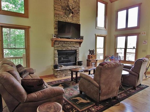 AMAZING opportunity to have turn-key cabin on 7.16 acres! Private home w/no expense spared w/high end finishes, NEW high end appliances and interior paint, solid core doors, comfort height toilets'. Circular driveway for more parking and easy in and out. The moment you walk in the door, you will be impressed by the floor to ceiling stacked stone gas log FP could be WB, Beautiful T&G soaring ceilings, plentiful windows to let natural light & nature inside. Wrap deck on main perfect for entertaining guests. Galley Kitchen w/pass thru to dining area. BR & BA on main, Master Suite upstairs w/multi use loft area, bath w/walk-in tiled shower, double sinks. Terrace level w/wet bar, game room, bedroom and bath. NEW Hot tub on lower deck, table firepit, fenced yard for your furry friends. 3 creeks boarder property and can be heard when cicadas are not in town! Trout Lodge, pool and tennis courts very near by. 2021-06-27