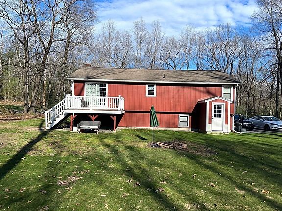 Pretty split-entry home, on a private wooded acre of land, with lots of room, for family living. Hardwood entry and stairway, lead to the hardwood living room with cozy fireplace and dining room with sliders to deck, overlooking a beautiful level yard. Kitchen was remodeled approx. 10 years ago with Tuscan design cabinetry, stainless appliances and huge breakfast bar, perfect for entertaining. There are three good sized bedrooms up with full bath and the lower level makes a perfect family room or, the perfect place for mom and pop or other family members, to spend their years Roof is 14-15 yr old architectural roof. This home has ideal IN-LAW potential with big daylight windows, separate heating zone, and 3/4 step-in bath. You'll also enjoy a good walk to Shirley Lake which offers swimming, boating and camping for $300/year. This home has been lovingly cared for and is waiting for you!
