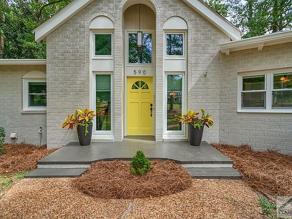 Back On Market Due to Buyer Financing! Fall in love with this unique and refreshed contemporary home in an unbeatable Five Points location! Fresh exterior and interior paint with designer colors! Gorgeous, floor to ceiling windows in the greatroom accentuate the cathedral ceiling with exposed beams. The chimney and masonry fireplace extend to the ceiling, drawing the eye to the beautiful exposed beams and the expansive wall of windows that flank each side of the room. Bright and airy kitchen has customized updates to include a stacked marble backsplash, new white quartz countertops, an oil-rubbed bronze undermount sink w/ disposal, stainless steel appliances and gas stove. From the greatroom - through an arched doorway - is the formal dining room with wainscoting and access to the private rear deck. All main level living spaces, bedrooms, and outdoor spaces have elevated view of the fenced backyard with mature oaks and Tulip Poplar trees. The master suite is on the main level and features a HUGE walk-in closet as well as a renovated ensuite bathroom with contemporary flair. An impressive shower system completes the spacious tiled shower with frameless glass surround. The terrace level of the home provides another large living space for friends and family to gather. Travel not far to the exciting restaurants and shops of Five Points, Alps Corridor and Downtown Athens! Less than three miles to the UGA Arch!
