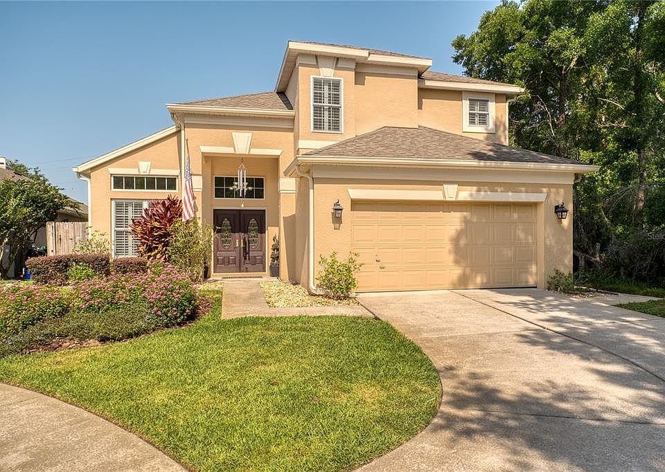 One or more photo(s) has been virtually staged. Upgrades galore, this impressive 4-bedroom (all with walk-in, BUILT-IN CUSTOM CLOSETS), 3 full bathroom Longwood abode offers a saltwater, screen-enclosed pool and spacious living with 2,264 sq ft. Nestled in a quiet cul-de-sac, enjoy privacy and scenic wooded views from the conservation area right outside. Through the double front doors, guests are greeted by soaring ceilings in the living and dining areas. Wood flooring runs throughout the first floor and energy-efficient PELLA DOUBLE-PANE windows with plantation shutters exude elegance. The separate kitchen features porcelain tile flooring and seamlessly flows into the family room overlooking the pool area. Stainless steel appliances (including a BOSCH dishwasher and NEW Samsung French Door fridge) complement the quartz countertops and breakfast bar, making it the heart of the home. Enjoy pool views from the custom-built banquette by the bay window, perfect for casual family meals. Two PELLA TRIPLE-PANE sliders, with built-in blinds (one in the kitchen and one in the family room), lead out to the screen-enclosed, paver patio and saltwater pool. A motorized retractable awning provides shade, while the NEW LED adjustable multicolor lights on the screen enclosure create a stunning light show at night. The fully fenced and landscaped backyard, with new fencing along the conservation area, ensures safety for kids and pets. Downstairs you’ll find one bedroom with built-in custom closets and a remodeled full bathroom with walk-in shower, along with a fantastic inside laundry room leading to the 2-car garage. Upstairs, beautiful wood flooring continues into two guest bedrooms and a beautifully remodeled hall bathroom featuring a glass-enclosed walk-in shower with colorful glass tile accents. The spacious primary suite boasts a cove ceiling, large walk-in closet, windows overlooking the pool, and an incredible en-suite with double-sink quartz vanity, glass-enclosed shower, jetted soaking tub, and private toilet room. Located in the serene Longwood Plantation neighborhood, consisting of only 94 homes, this residence occupies the BEST LOT. Historic Downtown Longwood, with its charming shops and restaurants, is just around the corner, along with excellent SEMINOLE County Schools.