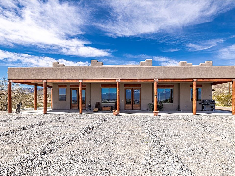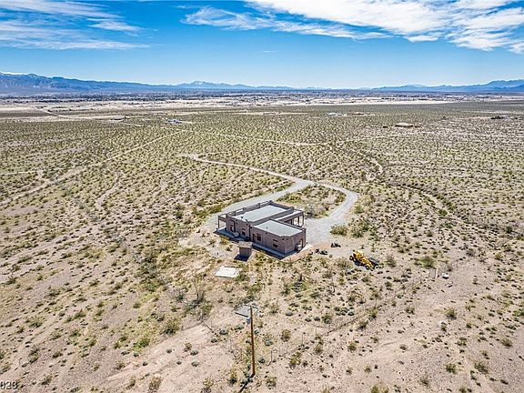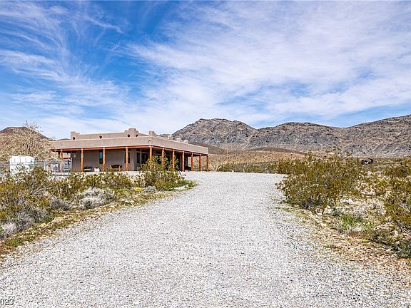 Beautiful, well built home on 5 acres fully fenced overlooking the valley with beautiful mountain views! BLM out Back of the property for tons of desert adventures! Currently used as a shooting range! Home has only had 2 owners and shows pride of ownership! Every bedroom has a bathroom and walk in closet! Wrap around covered patio. 2 car garage with cooling system and additional 1 car garage each with their own automatic door and entry to house. Beautiful Natural Desert landscaping with gorgeous mountain rock abundant throughout property. Living room, kitchen, and dinning room lookout large windows to epic views of the Town. Custom Cabinets throughout the home for ample storage. Custom 8ft hard wood doors in every doorway. This Home was built with every step in mind along the way and constructed masterfully. One of a kind property!