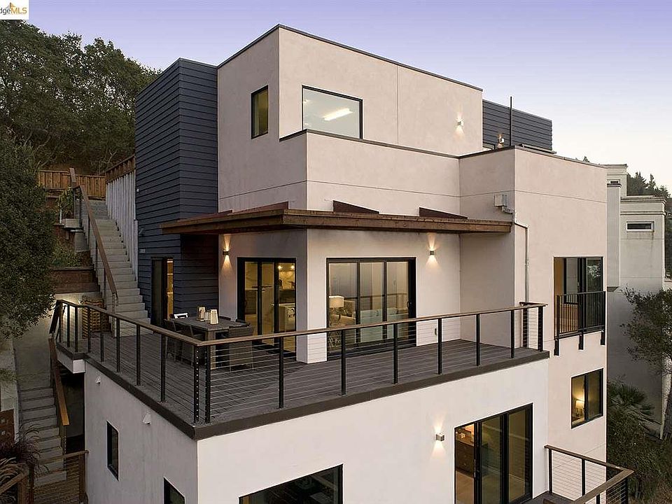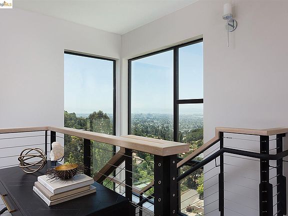 Bright, Open airy , clean, sleek, Stunning ultra-modern new construction house nestled in the hilltop neighborhood of Claremont Hills, bordering Oakland & Berkeley. Designed by award winning architect Robert Nebolon w/stunning Panoramic Views of the South Bay. This hand crafted home is comprised of fine details & artisan materials to provide warmth to its contemporary architecture. Enter this home & take the inviting open stairway or elevator down to the main level. Open floor design is an entertainer's delight, incorporating a sleek kitchen, dining rm & living rm all into one spacious great room. A wrap around deck opens from the mainfloor for seamless indoor outdoor living. Floor to ceiling windows & doors offer beautiful natural light throughout this open & airy home. Down one level to a luxurious master suite w/large walk in closet beautiful luxury spa bathroom w/a tub & a private balcony & 2 other large bedrooms w/shared hall bath & laundry. City of Oakland, Berkeley mailing.