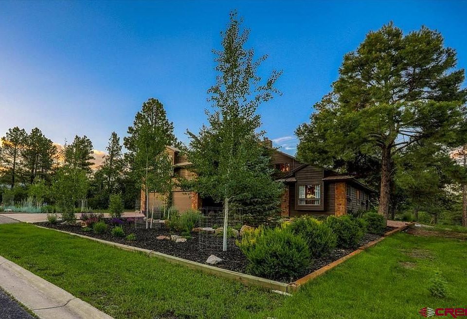 Meticulous golf course home with views in all directions. This home is stunning inside and out and fully updated and remodeled! Starting outside, you will find all new zero-scape grounds with full irrigation and a variety of low maintenance plants and gardens, including a native wildflower garden. In the back, you will be treated to a babbling brook water feature, hot tub with view, firepit and multiple seating areas for dining, reading and summer naps. Tall Ponderosas and views of Pagosa Peak and the east range are a delight from the hot tub! There is a large golf course rough between the property and the course so this home feels like it is on large acreage. Full of nightly deer, fox and a plethora of bird species, this is a nature lovers dream setting. Inside is a great room full of windows, and yes views! Tall ceilings, engineered hardwood, and a cozy native rock fireplace – the perfect place to land after a day in the mountain fun of golf, hiking, biking or exploring. Huge main floor primary suite with newly remodeled bathroom including deep soaking tub and quartz counters is yet another great place to relax. On the main floor is an additional guest room currently serving as a home office. Off the garage is an artist studio with full view insulated glass garage door, heat and AC; perfect for indoor/outdoor work. In the upper level you will find a media loft, and 2 large guest rooms, both with an ensuite bathrooms. This home has huge storage spaces throughout; some large enough to be a kid’s play place. Located on pavement, meticulously kept and cared for and AC too! Absolutely nothing missing in this home! It is priced to sell and will go quickly, so pick up the phone and call your favorite Realtor® (hopefully that’s us – Engel & Völkers Pagosa Springs) and make an appointment today! There are some limitations in showing times due to remote work schedule of the owner, so get this on your showing schedule and don’t miss out. Could be sold furnished with only a few exclusions - strong offer only. (no artwork and a few pieces of furniture will not convey).