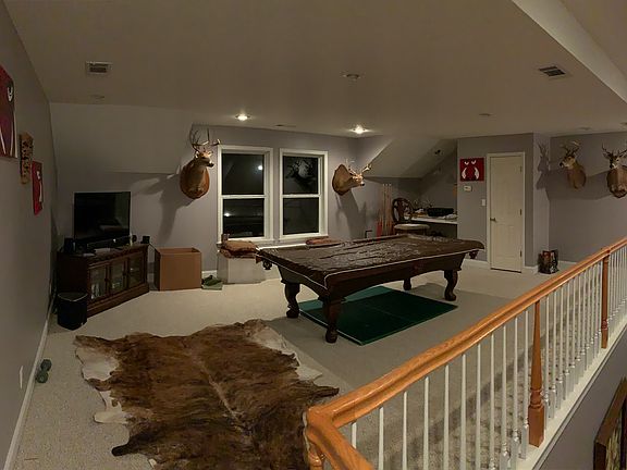 Beautiful 3/2 home. Grand living with balcony. Game room upstairs overlooking open family room. Pool table stays. Safe room in master closet. Jetted tub in master. Fenced back yard with concrete pad with basketball goal. High ceilings in 2 car garage for extra storage. Electrical to house in underground. Wooded and pasture mix. Mineral rights do not convey but are negotiable.
