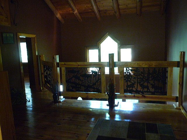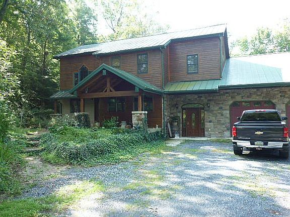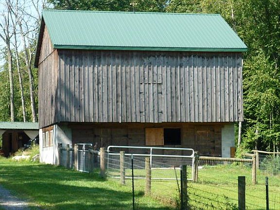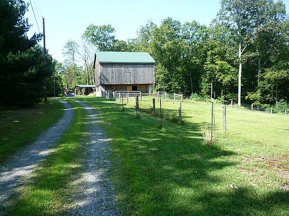 Secluded log style home on 12.5 acres. Newer bank barn with 2 stalls and nice fenced in pasture other outbuildings include a chicken house and storage shed.