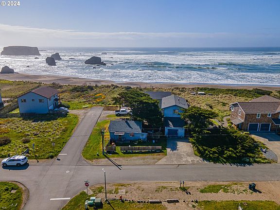 Stunning ocean views from your living room, kitchen, bedrooms, and deck! This thoughtfully designed home features a reverse floor plan with the master suite, kitchen, and living area upstairs to maximize the unobstructed views of the Pacific Ocean, Coquille River, and Bandon Lighthouse. Downstairs offers two additional bedrooms, a full bath, and an attached garage with loft storage.A detached 738 sq. ft. cottage with one bedroom and one bath is a contractor’s special — bring your tools! It offers excellent potential for a guesthouse or studio with a little creativity and TLC (check with the City of Bandon for allowable uses).Just minutes from Old Town Bandon, beaches, and Bandon Dunes Golf Resort, this property combines coastal charm, flexibility, and unmatched views.