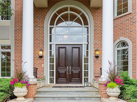 A custom-tailored estate beyond the gated entry is intuitive, visually engaging and built to last a lifetime! A drive outlined in concrete intertwines the perennial gardens and leads to a distinguished front entry with an atrium supported by expansive 2-story columns and 8' solid core French doors. The foyer is elegant in nature with an open staircase to the lower level and transom windows above each access point to the stunning yet separate living room and dining room. The living room is finished with floor to ceiling windows allowing for panoramic views of the front and side yard while complimenting the fireplace. The dining room mirrors the living room in its floor to ceiling window design but is softened with a subtle tray ceiling and indirect lighting touch, this space is amazing for hosting any size gatherings. Just off the dining room is a charming butlers pantry unfolding to an exquisite kitchen with 10' ceilings, 42" white cabinets, contrasting cherry island with exposed shelving, quartz counters, gorgeous pendant lighting, high-end 6-burner dacor range, double oven, side-by-side fridge, appliance garage and breakfast bar overlooking the separate eating area. The separate eating area is brilliantly designed with glass door entry to the composite deck and an open concept to the family room. The family room is in a class of its own with vaulted ceilings, sprawling windows overlooking the yard, built-ins, dry bar and French doors to the den. The den features a zen ambiance with additional built-ins, incredible views and French door access to the living room. The main floor also offers hardwood floors throughout, 2 powder rooms, generous laundry/mud room and a front as well as a back staircase. The second floor is equally as spectacular as the first with 5 phenomenal size bedrooms each with hardwood floors and 4 full bathrooms. The primary suite is its own sanctuary with a cross between elegance and peace showcasing a beautiful fireplace, sitting area and access to the primary bath. The primary bath serves well as a private spa with an oversized soaking tub, double vanity with glass cabinet divider, separate shower and access to a gorgeous walk-in closet. The closet is a clever design split between his and hers with custom cherry organizers. The remaining 4 bedrooms offer 2 private suites and Jack and Jill arrangement. Full finished walkout lower level with theater room, separate media area, billiard room with wet bar, full bathroom and gym. A serene yard with unobstructed views, new composite decking, gazebo, incredible brick patio with built-in fire pit and a shed equal in size to a tandem 2 car garage!