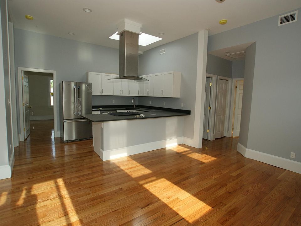 NO REALTOR FEE - MOVE IN AFTER 9/1 High Ceilings throughout (approx 15') on this second floor apartment. Located on Moody St this unit offers brand new everything. New kitchen with new cabinets, appliances, countertops and more. In unit washer and dryer. Two full bathrooms with one being en-suite master bath to the master bedroom. Large closets throughout and private deck of approx 200 sq ft. Available for 9/1 Sorry no off street parking available for this property. pets welcome! Tenants pay 1st, last, security. Contact today 781-254-2003 1ST, LAST, SECURTY