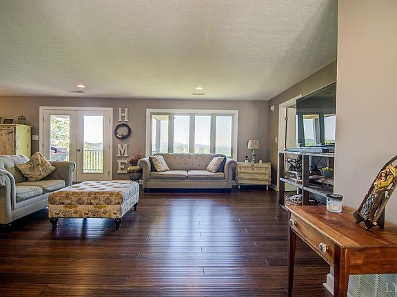 If you love amazing views every day and enjoy living on the ridge, check out this Best Kept Secret St of Campbell County! Paved road accesses West Side of Long Mountain just 20 mins to Lynchburg Airport. This home features 2 floors above grade and updated, modern fixtures, floors & paint. You'll love the open kitchen space w/ newer cabinetry, Granite countertops and covered Deck access w/ sunset views overlooking Downtown Lynchburg about 8 miles distant. 3 bedrooms 2.5 baths Main level Master suite & a basement garage are all yours! Owner installed a concrete driveway and circular loop allowing extra parking. You'll love the Massive firepit rocks too! Underground propane tank conveys, (owned) giving future owner option for gas generator or additional gas appliances. Don't Miss Out on this amazing opportunity!