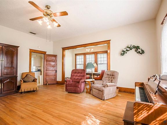 1930's bungalow with original hardwood floors, a new metal roof and 2 acres right in town. Two to three bedrooms depending on the configuration you use, a claw foot tub, central HVAC, large laundry room, two storage sheds and a detached garage with automatic garage door. Keep up with everyone in town on the front porch swing!