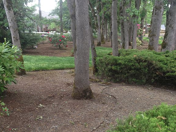 Move-in ready home nestled in the trees with some updates and well cared for inside and out. Large picture window in the inviting living room with fireplace. Lots of kitchen cabinets, and counter-space plus all appliances included. Separate family room offering large windows and corner pellet stove. Updated main bathroom. Triple vinyl windows. Large covered back deck with access to indoors. Huge back yard with nice natural landscaping. Many scenic trees, raised garden bed and partially fenced yard. Nice size shop building. Paved front driveway. All this on 0.34 acre lot near shopping, dining, school and city park. Don't miss this one!