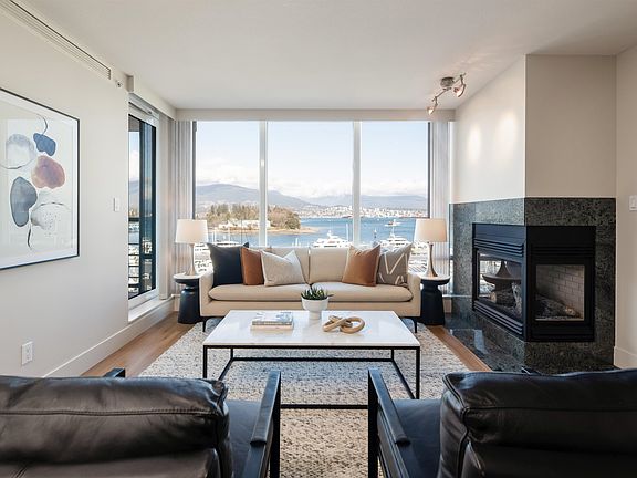 WELCOME TO CASCINA AT WATERFRONT PLACE IN COAL HARBOUR - this immaculately upgraded 2 bed 2 bath corner A/C luxury residence features sweeping unobstructed views of Coal Harbour Marina, Stanley Park and North Shore Mountains. Every room features an abundance of natural light with breathtaking views of the marina from every window. This home features a floor plan that's sure to impress: 1375 SQF of open concept living, gourmet chef's kitchen with granite counter tops, upgraded floors and designer paint throughout, cozy gas fireplace and AC, cover patio with unobstructed views, den or family room off the kitchen area and that could be an extra bright work-from-home office. 2 tandem parking stalls, big storage locker, and world class amenities.
