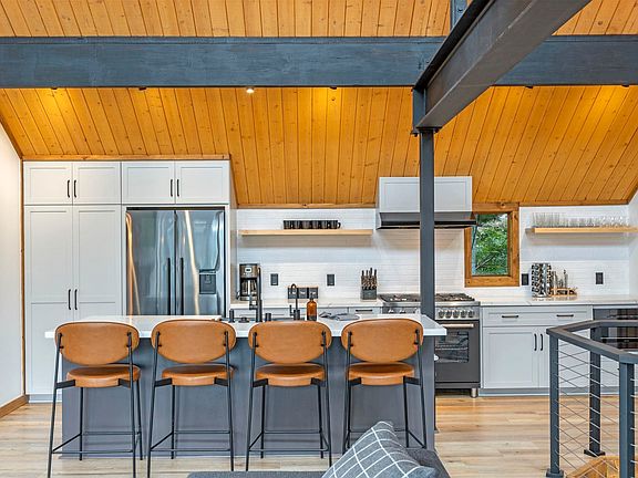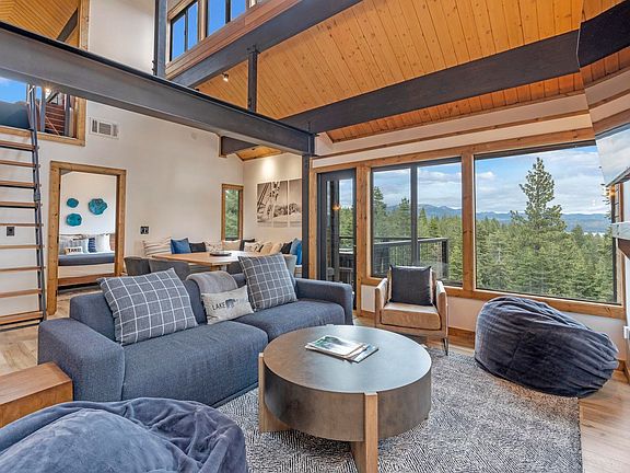 Welcome to 590 Nightingale Road, an exquisitely renovated gem in Carnelian Bay offering stunning panoramic views of Lake Tahoe. This 4-bedroom, 4.5-bathroom home was taken down to the studs in 2022 and thoughtfully updated from top to bottom with gorgeous designer touches and meticulous attention to detail. Enter the main level and be captivated by the great room, featuring soaring wood ceilings, steel beams, a cozy gas fireplace, and breathtaking views framed by expansive windows. The chef's kitchen is a culinary masterpiece, boasting a large center island with breakfast bar seating, custom cabinetry, and high-end appliances from Bertazzoni, Fisher Paykel, Bosch, and Zephyr. A steel ladder leads to a charming loft space, perfect as a kid's zone with built-in bookshelves. Step outside to the spacious upper deck, where the lake views create an idyllic setting for entertaining. The primary suite on the main level boasts a generous walk-in closet and a luxurious en-suite bathroom fitted with a Pottery Barn vanity, custom frameless glass shower doors, and marble tile. Downstairs, two additional bedrooms with en-suite bathrooms, a cozy den area, and a lower deck with a fire pit offer plenty of space for friends and family to relax. Across the outdoor walkway, the versatile fourth bedroom/recreation room comes complete with a bathroom, built-in wet bar, and ample closet space for all your seasonal gear. With all new electrical and plumbing throughout, three decks, and three fireplaces, this home offers the ultimate in comfort and style. Furnishings and decor are hand-selected by the luxe mountain modern design firm, Tahoe Modern. Situated just minutes from the lake and conveniently located 12 miles from Palisades Tahoe Resort and 13 miles from Northstar Resort, this modern cabin is perfectly positioned to offer four-season adventure amidst Lake Tahoe's unparalleled beauty. This is a rare opportunity to own a turnkey North Shore property with lake views from every bedroom in a serene wooded setting. 590 Nightingale Road is more than a home—it's a lifestyle, ready to create lasting memories for its next owner.