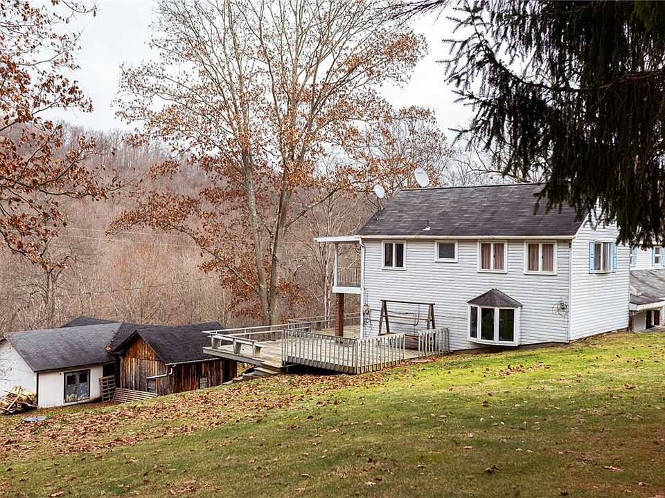 3 Bedroom 2BA farm house on almost 10 acres in the Beaver Area School District. Property overlooks an idyllic hollow with a level creek bottom. Multi level deck with a number of covered porches give you plenty of places to enjoy the view. Flooring has been redone throughout with vinyl plank flooring in the kitchen and new carpet. 3 bedrooms are on the upper level and have been recently painted. Multiple sources of heat including oil furnace and wood burning stove in main level. 2 Car garage provides plenty of room for your cars, toys, and tools. Massive entertaining space above the garage could be converted to anything you want it to be. OGM rights included.