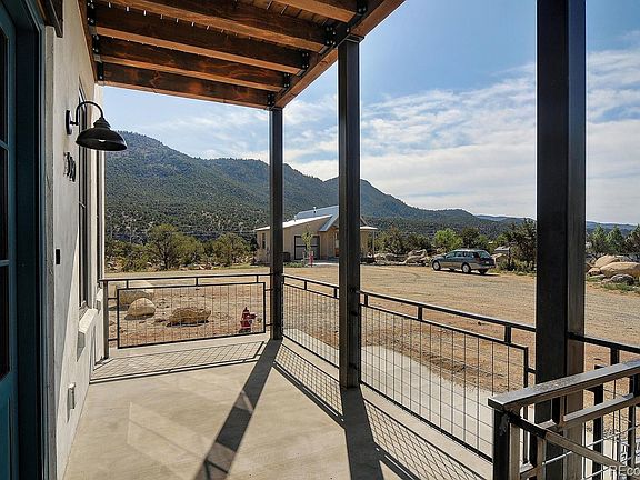 Stunning new construction of 1955 square feet, enjoys the walk-ability to downtown, the many trails accessing disk golf course or tennis courts, and the river park. This home is on a premium corner lot with alley access for the garage and street side entrance to the 740 square foot Accessory Dwelling Unit above the garage. Enjoy expansive views of Mt. Princeton and Midland from the front porch and private upper master bedroom balcony. Upon entering, a tiled entry, ideal for coat hooks and benches, welcomes your guests into open living, dining, and kitchen flowing seamlessly together, perfect for entertaining. A shiplapped wall highlighted by a built-in gas fireplace, custom shelving and a mixer of metal details add to the eloquence of the home. Show-stopping kitchen displays quartz countertops, flush mount, soft close cabinetry, stainless steel appliances, pot filler at the cooktop and additional conveniences for modern day living. Main floor bedroom and bath have an adjoining vestibule that closes off from the rest of the main floor with a pocket door for guest privacy. Retreat to the warmth of the master suite complete with extended closet space, abundance of sunlight, views, and efficiently designed for comfort. In addition to the master suite, the upstairs houses 2 bedrooms, a luxurious full bath, and laundry area including the washer and dryer. Built-in storage is ample throughout the home, from the cabinetry and open shelving in the living room, to storage benches and office area in the dining space. designed throughout with detail and craftsmanship in every room. The backyard hosts a porch and separate pad with plumbing ready for a hot tub. 2 car detached garage accessed from the alley, with large storage and access to the back yard. Interior stairwell on the side of the garage takes you up to a 2 bed, 1 bath ADU fully equipped with stackable washer & dryer, stainless steel appliances in the kitchen, and balcony with views to the east.