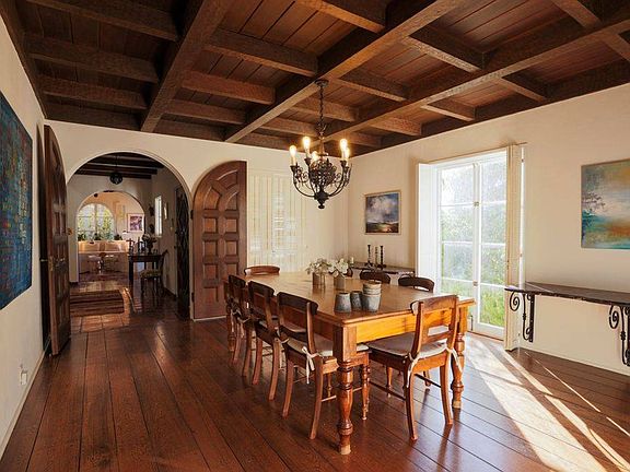 Private walled backyard gardenSpanish tile floorsEn-suite bathArched wooden doorsWood-beam ceilingsFormal dining roomSeparate breakfast room
