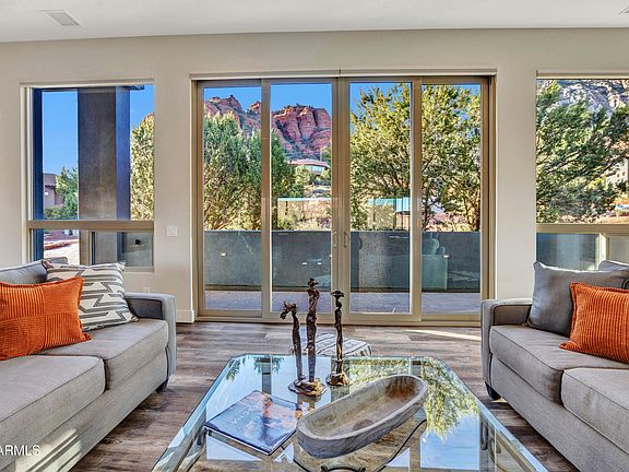 There are houses that face the Red Rocks and then there are homes that live with them. This is the latter. A nearly new, single-level modern sanctuary in West Sedona that doesn't just offer views, but curates them. Step inside, and you'll find Great Room Design choreographed for light and landscape. Every living space has its own patio or covered deck. Every window is a deliberate frame pulling the dramatic reds and golds of Thunder Mountains' backdrop right into the heart of your day. And just when you think the views can't get better, the rooftop invites you up for what might be the best private stargazing perch in the neighborhood. Up here, under Sedona's ink-black skies, you'll see constellations the way ancient navigators once did. Inside, the story continues: a chef's kitchen with bespoke cabinetry and high-end appliances that feel more like sculpture than utility. The primary suite is a study in calm= spa-like, generous, and quiet. Every detail has been curated, not just selected. But the secret showstopper? A 27-foot retractable patio shadescreen on the South Covered Deck that transforms your outdoor living space into a climate-controlled lounge. Open it wide to let the breeze in or bring it down and create your own private, shaded oasis. Inside, the story continues: a chef's kitchen with bespoke cabinetry and high-end appliances that feel more like sculpture than utility. The primary suite is a study in calmspa-like, generous, and quiet. Every detail has been curated, not just selected.This isn't just a home near the trails, it's a home that feels like a trailhead to everything: nature, design, solitude, and awe. In a town where views are currency, this property is a private vault of Sedona's richest assets and minutes to grocery, medical, restaurants, and shops.