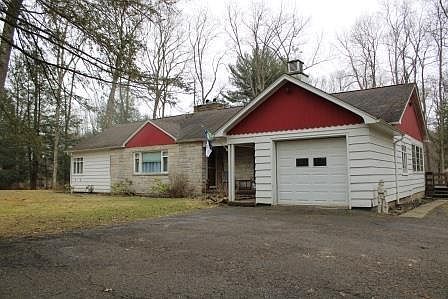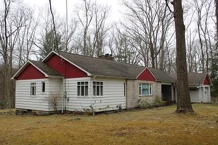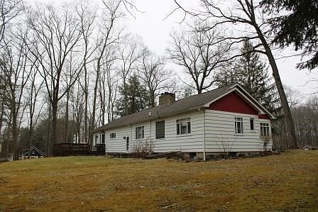 Situated on two lots totaling +/-17.95 acres giving plenty of room for recreational pursuits or to enjoy the generously sized pond set back from the road offering privacy. The single level. 1,726 sq ft, 3 BR, 1 1/2 bath home features a well equipped kitchen with eating area, a small additional area off the kitchen that leads out to the roomy deck, a dedicated dining room, spacious living room with gas fireplace and three bedrooms (one with 1/2 bath attached), full hall bath and hardwood floors. The basement area has a finished family room with fireplace, large laundry area, two additional storage and work spaces. In addition to the attached single stall garage, the detached garage has a separate electric service, plenty of room for work space with a finished second floor and two storage sheds. Great family home. Taxes are 3579.70