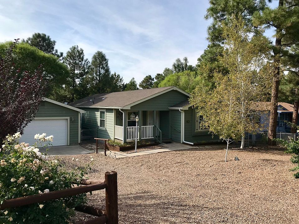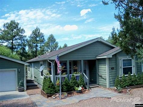 If you haven't given up on owning your White Mountain getaway, here's another opportunity. This double wide manufactured home features a detached garage and low maintenance landscape on a lot covered in large pine trees and a fully enclosed back yard for the family. Enter to find open concept living with vaulted ceilings and upgraded flooring. The family room is suitable for entertaining and overflows into the large kitchen complete with plenty of storage, a large island and adequate dining space. If you prefer to cook outdoors, the covered deck is conveniently located off the dining room. A large master suite sits at the back of the home and hosts a walk-in closet and en-suite