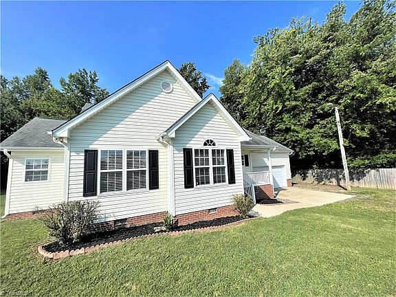 Come put your personal touches on this great home located in desirable Cedar Hollow subdivision in Stokesdale! Close proximity to Belews Lake!! The home is situated on a large level lot and features an open concept kitchen, dining and living area. Lots of natural light throughout and a gas log FP in the living room. New laminate flooring in the primary bed and bath. Vaulted ceilings in the living room, primary bedroom and one of the secondary bedrooms. Most of the home has been freshly painted. Lots of potential!! Sold AS-IS.