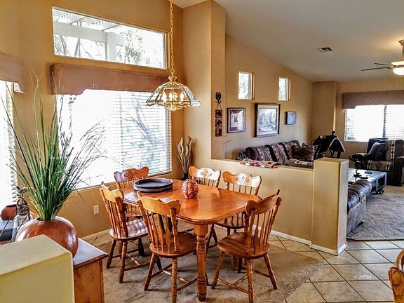 One of the very best locations available in Sunset Greens with one of the best views available in Mesquite, at any price! East facing, fairway front, next to tee box of the 18th fairway of the Casa Blanca course. The sunset colors and shadows on the Virgin range of Mountains will amaze, all day long. Covered, tiled patio, is private and cool with morning sun and afternoon shade. Where the home sits at a bend in the road it has an extra large fenced back yard... yes, big enough for a pool if you wanted! But you don't need to... Sunset Greens has gorgeous landscape & common areas including 2 pools, 2 spas, central parks and walking paths, RV storage, gated, and more! Inside, you will find all tiled floors, a remodeled kitchen with beautiful granite counters, farm sink, new refrigerator, luminous pendant lighting, high ceilings, 3 bedrooms and two baths. HOA is AWESOME!!! $155/month gets you all landscaping maintained (yes... your back yard too), insurance, trash, exterior paint stucco, pools, parks, half off rack rate at Casa Blanca golf course, & 20% off Golf Course & Casa Blanca, food, beverages, & merchandise. Gated community has gates closed at night, & open days. Resort living!