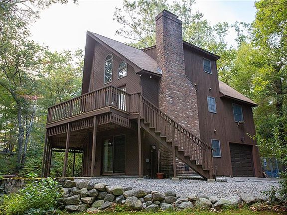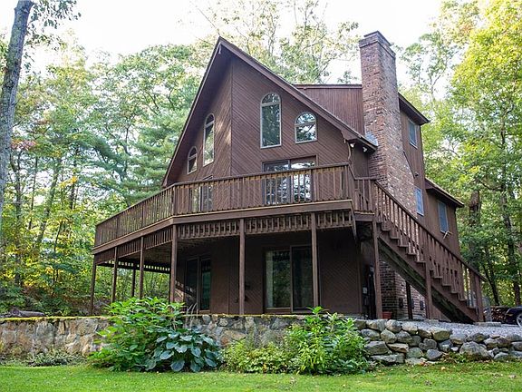 STUNNING A-FRAME CONTEMPORARY OFFERING 3 LIVING LEVELS, FLEXIBLE FLOOR PLAN, 3 FULL BATHS, SOARING CEILINGS AND TONS OF NATURAL LIGHT. MASTER SUITE OVERLOOKS MAIN LIVING, GENEROUS LIVING ROOM WITH BRICK FIREPLACE, DEN EASILY CONVERTS TO THIRD BEDROOM. FINISHED LOWER WALKOUT LEVEL WITH AWESOME HOT TUB AND SAUNA SETUP! HUGE WRAP AROUND DECK. PRIVATE 3.3 ACRE LOT CLOSE TO ALL AMENITIES WITH A GREAT FEEL OF BEING IN THE COUNTRY. WONDERFUL HOME.