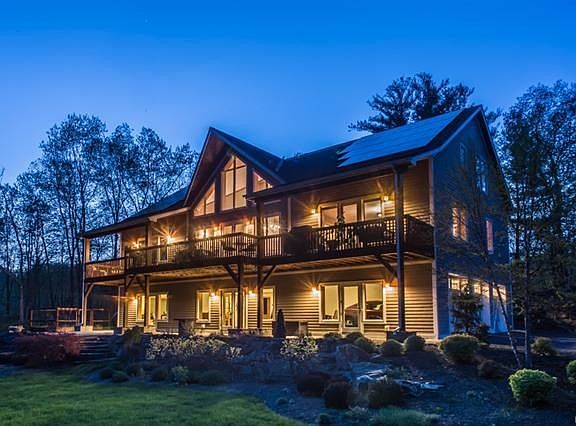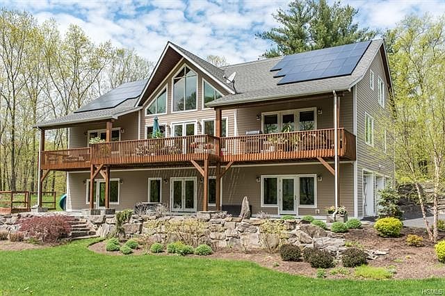 Gracious country living at its best! Built to be highly energy efficient, this gorgeous 5000+sq foot architect designed home is sited on top of 3.4 acres. Enter and be wowed by the natural light. Gorgeous wood floors glisten with every room having large windows which bring in the sunlight and views. On the first floor you'll find 2 bedrooms with en suite baths. The vaulted ceilings and wall of windows and French doors lead to a covered deck spanning the entire length of the house. Upstairs, a balcony takes advantage of the breathtaking windows allowing for a open airy feeling. The gracious master bedroom has an ensuite luxury bath with a jetted tub and shower for 2! Some features of the home are French doors in both livings rooms and the family room, ample closet space and a generous laundry room. 1200 sq feet of sunlit, on grade, walk out finished basement complete this home with full bath and the family room. This house was built for entertaining. Basement space is great for use as a nanny suite, for guests or extended family! Outside enjoy the gazebo, rock outcroppings and grand covered deck or the bluestone patio. Now imagine all this with NO energy bills! It's possible, this house is Zero Energy Ready which means it can produce as much energy as it uses with conscientious use. The house was constructed with state of the art ICF (insulated concrete forms), geothermal heating and cooling systems, heating energy ventilation recovery system and an air filtration system.