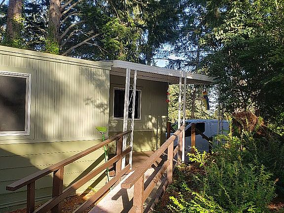 The last pic is not the property. I can't seem to remove the pic. Pets are allowed. Move in ready! Freshly painted inside and out. Remodel includes: Flooring, Kitchen, Bathroom, Plumbing and roof. This is in a well-maintained 55+ park. There's a covered parking spot that includes a storage shed. Plus, there are 2 other off street parking spaces.
