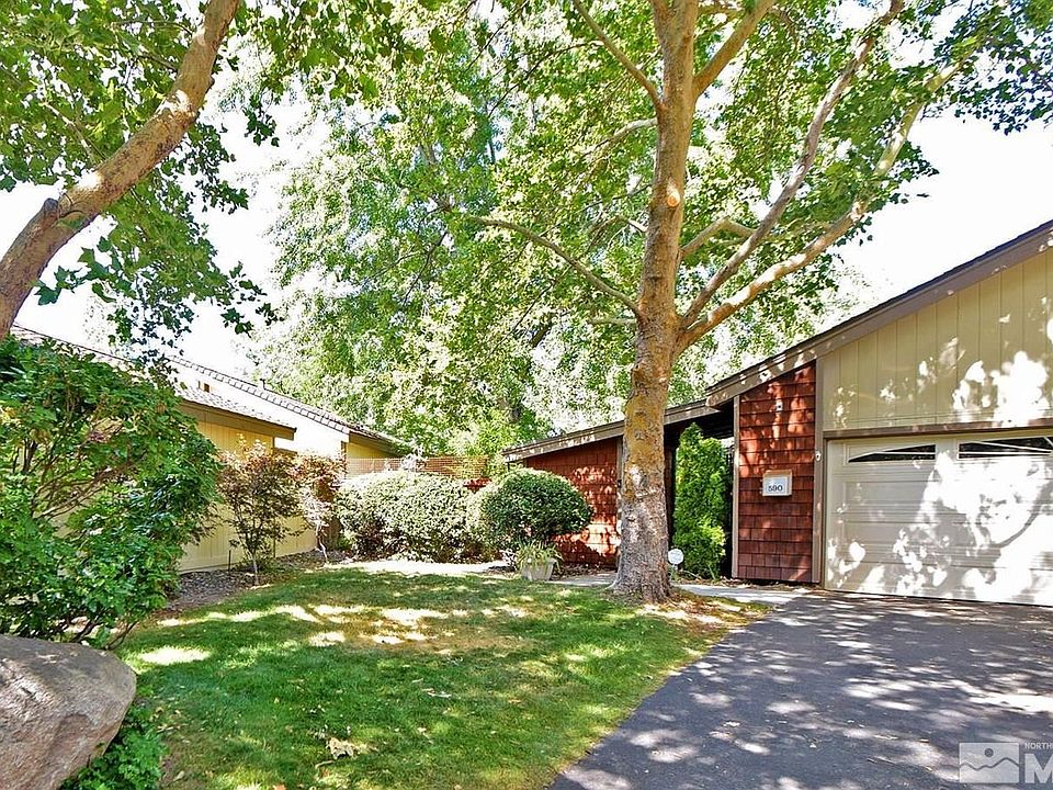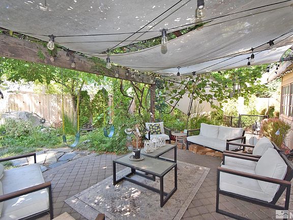 Welcome to this exquisite home nestled in the highly desirable Old Southwest Reno neighborhood. Offering a harmonious blend of elegance and functionality, this residence boasts three bedrooms and three full baths. As you enter through the travertine-floored foyer, a sense of sophistication envelops you, setting the tone for the entire home. The split floor plan affords privacy and convenience, with a guest bedroom and bath discreetly located off the spacious garage., An adjoining sitting room enhances the sense of privacy, providing an ideal retreat for guests. The heart of the home is adorned with remarkable features. The living area is graced by an impressive "Travis Industries" gas fireplace, featuring an antique iron fire screw—a true centerpiece that exudes warmth and character. Double painted classic French doors and windows connect the living area and kitchen to a shaded garden oasis, inviting the outdoors in and creating a seamless indoor-outdoor living experience. Step onto the wrap-around paver patio, where tranquility reigns beneath the natural canopy of overhanging wisteria, grape vines, and shade trees. This private sanctuary is perfect for relaxation and entertainment alike. The meticulous landscaping adds to the enchanting ambiance, while a garden shed and a convenient dog run at the rear of the property provide additional functional elements. The master bedroom, generously proportioned, offers a retreat within itself. Throughout the living spaces, crown molding and 6" baseboards lend an air of sophistication, while Hunter Douglas window coverings offer both style and privacy. The kitchen, a culinary haven, features wood cabinets with elegant granite countertops. Hardwood floors grace the kitchen, dining area, living room, and hallway, creating a seamless flow and adding to the home's cohesive design. Double pane wood windows fill the spaces with natural light, framing views of the professionally landscaped yard. The property includes RV parking within a designated area, subject to HOA approval, catering to those with adventurous spirits. Don't miss the opportunity to own this exceptional property in the coveted Old Southwest neighborhood. With its well-crafted design, upscale finishes, and abundance of desirable features, this home is ready to welcome its fortunate new owners into a life of comfort and style.