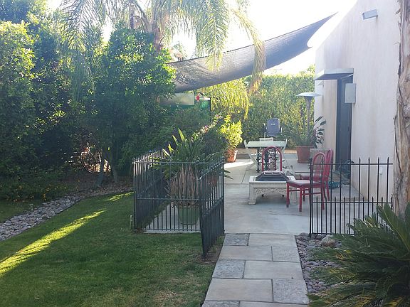 JUST REDUCED! The ideal desert escape house located in the Historic Racquet Club West area of Palm Springs. Modern living space built in 2004 on almost 1/3 acre in a private corner lot. This Modern Home features 3 ample bedrooms/3 baths en suite with sliders to pool/sitting areas. Vaulted 14 ft. living room ceiling with clerestory windows allowing for natural light to fill the open concept. The gourmet kitchen features all stainless steel appliances. The pool/spa offers relaxing salt water with shade sails to enjoy year-round. This property offers peace and serenity for the special owner looking to enjoy what Palm Springs has to offer and has the space for your home office/creative space too!