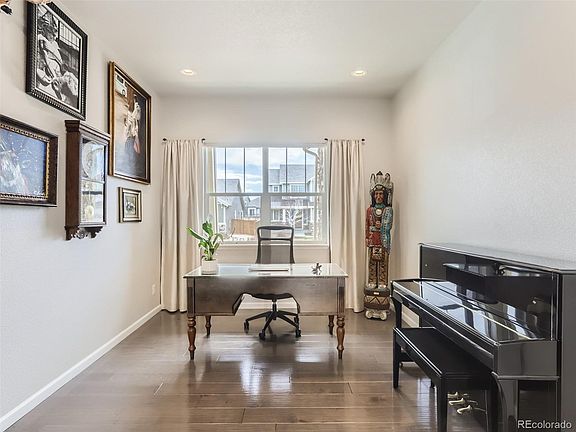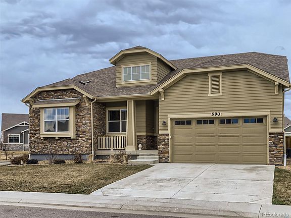 If you've been searching for a spacious ranch home on a corner lot with MOUNTAIN VIEWS, look no further! This home boasts 3,800 square feet, 3 bedrooms, 3 bathrooms and is located in the highly sought after community of Berthoud. Upon entering the home, you are greeted with dark wood laminate floors throughout the common areas, 10 foot ceilings and a grand foyer which showcases a beautiful chandelier. To the left of the foyer, you will find a spacious office with french doors, two bedrooms and one full bathroom. Continue past the foyer and you will find the family room complete with gas fireplace and tons of windows allowing for ample natural light throughout the day and showcase the home's beautiful MOUNTAIN VIEWS! The kitchen is conveniently located next to the family room which is perfect for entertaining. The kitchen boasts white cabinets, granite countertops, stainless steel appliances, decorative subway tiles, a large kitchen island, and pantry. Off of the kitchen, you will find the prelit partially covered large extended concrete patio and professionally landscaped backyard. The patio features a newer hot tub- perfect for those cold Colorado nights and is included with the sale of the home! The spacious primary bedroom has a 5-piece en suite bathroom, complete with a large seated shower, and DUAL WALK-IN closets! To round off the main level, there is a laundry room and mud room conveniently located off of the garage to help keep the house clean and tidy! The large unfinished basement has a bathroom rough in and has endless possibilities. This home is located with quick access to I-25 for commuting, close proximity to local shopping, and a short distance to TPC Colorado Golf Course. The neighborhood features open grass park areas which host community activities during the summer months, tennis court, pickleball courts, basketball court, horseshoe area, and 2 dog parks. All that's left to say is "Welcome home"!
