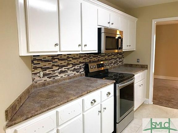 Remarkable home huge lot with tons of privacy this home will not last long upgraded paint and flooring throughout with brand new stainless steel appliances and a beautiful glass mosaic backsplash with stainless tiles this home feels and smells new huge backyard (Privacy Fence being added ) with tons of features well water so no water bill open floor plan concept his and her sinks separate tub and shower in master with a walking closet thats gigantic ten minutes from fort stewart stewart !