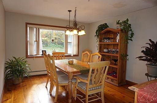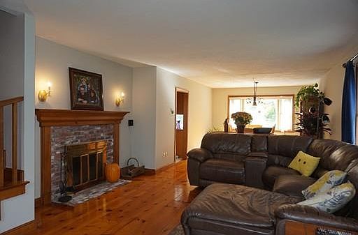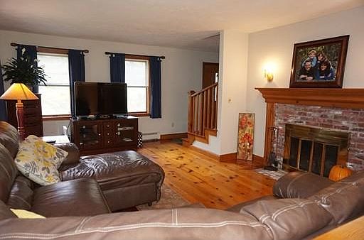 Reproduction Center Chimney Saltbox Colonial with Character! You'll LOVE the Gorgeous Wide Pine Floors on both Levels! Large Eat In Country Kitchen with Ceramic Tile, and Walk-in Pantry! Front to Back LR/DR Combination with Fireplace & Bay Window! Spacious Family Room or Home Office with 2nd Fireplace! Turned Staircase to 2nd Level with Master Suite with Jacuzzi Tub and 2 Additional Bedrooms all with Wide Pine Flooring! 1st Floor Laundry! Oversized 24x24 Garage with 2 Brand New Garage Doors plus a 10x10 Mudroom to catch all the clutter! Approx. 589 Sq Ft in Finished Lower Level with 3rd Heating Zone and Room Sized Cedar Closet! Young Boiler and Roof! Detached 2 Story Barn is great for storage, hobbyist or kids playhouse! There is an additional finished space over the garage with exterior access only. Two large Composite Decks plus a fenced in area for pets or kids! Great 1+ Acre Lot on Quiet Country Road! Title V in Hand! Custom Built by Original Owner!