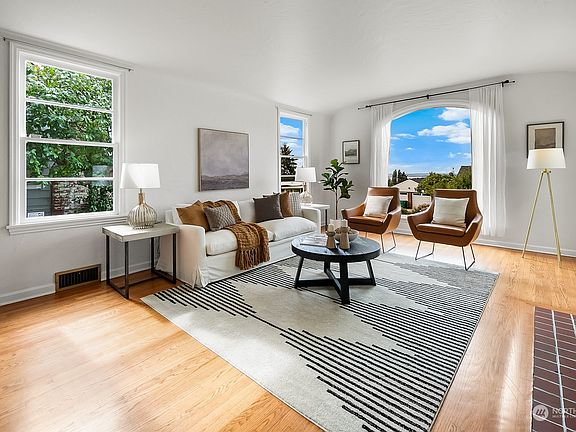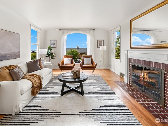 Enjoy Sound & Mountain views from this updated 1939 West Seattle classic on an amazing 6,400 sf corner lot. Step inside to sun-drenched rooms, refinished hardwoods, crisp interior paint, and updated kitchen. Relax + entertain in a grand living room with barrel-ceiling, fireplace, spectacular views. Great layout with spacious bedrooms, a bathroom on each floor, lower level family room. Both upstairs beds feature views of the water and mountains. Outside, you'll love the fenced yard, big lawn, tons of space for gardening, pets, games, fire pit, bbqs. Alley in back to detached 2-car garage/carport. Future DADU? All this on a tree-lined street in great neighborhood, close to shops, restaurants, parks, transit, and more. Welcome home!