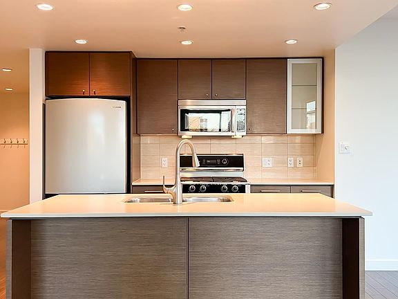 "Lotus" By Cressey in Richmond. Air-Cond Spacious 2 Bedroom 2 Bathroom located on a Quiet NE Corner. Functional floor plan with a spacious open concept & has a Kitchen Island, S/S appliances, quartz stone countertops, gas cooking, in-suite laundry, large balcony with views towards the City and Mountains. Oversized windows and comes with one secured parking & storage locker. Master has walk-in closet & an ensuite. Efficient geothermal heating/cooling provides year-round comfort. Enjoy world-class amenities: gardens on the 5th level, outdoor play areas for children, indoor pool, spa, steam room, fitness and media centers, meeting room, social & fireside lounge. Just minutes from the airport and walking distance to Canada Line, Richmond Centre, Minoru Park, Transit, T & T shopping.