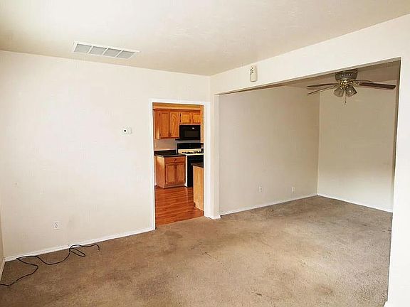 This spacious home is located on a large corner lot with plenty of mature trees. Enter this home to find an open entry/living space. Large windows allow lots of natural light. Just off the living room is the kitchen with natural wood cabinetry, dark colored countertops, gas range, built-in microwave and dishwasher. A large dining area adds to the flow of the space. The spacious laundry room extends off the kitchen with a door opening to the backyard. Space is overflowing here with three bedrooms plus a bonus room that will make a great office and two full bathrooms. Section 8 welcome.