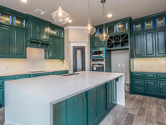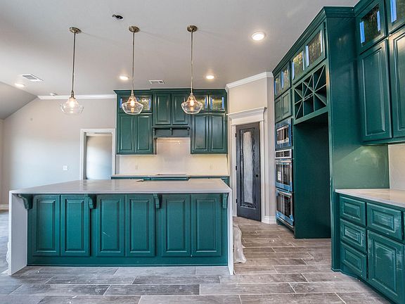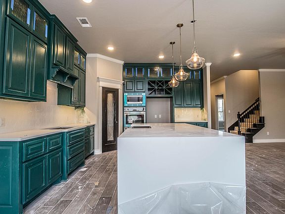 This Augustine Bonus Room floor plan includes 2,710 Sq Ft of total living space, which includes 2,500 Sq Ft of indoor living space and 210 Sq Ft of outdoor living space. There is also a 570 Sq Ft, three car garage with storm shelter installed. Home has 5 bedrooms or an optional study, 2 full bathrooms downstairs and a full bathroom upstairs with the bonus room. The house has fully sodded yards with in ground sprinkler system installed and front yard with landscaped beds and a covered back porch with outdoor fireplace. The living room has a gas fireplace with stack stone surround to the ceiling. The kitchen has stainless steel farm sink, built in stainless steel appliances with a gas range, an electric oven and a range microwave. Decorative tile backsplash, 3CM quartz counter tops & waterfall island, custom cabinetry. Master suite features boxed ceilings with crown molding detail and an attached bathroom with a dual sink vanity, European style walk in shower, whirlpool tub and walk in closet. Access to the laundry room from the Master Closet! Home has Rinnai Tankless water heater, whole home air purification system & fresh air ventilation, R-44 insulation and Solarboards, insuring energy efficiency.