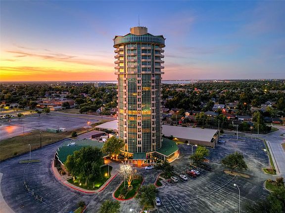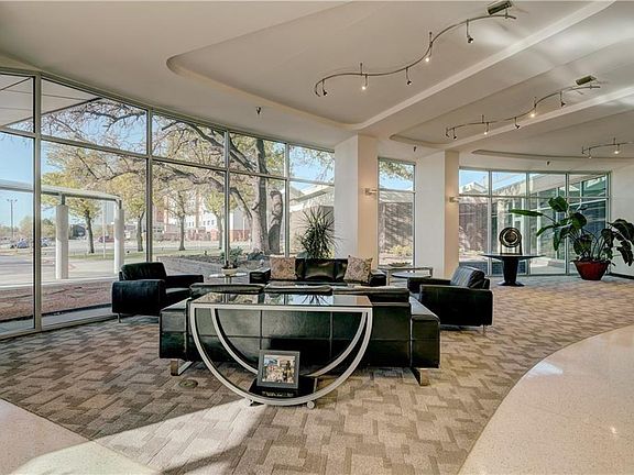Elevate your lifestyle to new heights w/ this remarkable residence! Welcome to the stunning high-rise within the iconic Founders Plaza which is listed on the National Register of Historic Places. This 2-bedroom property is located on the 8th floor. As you step into this exquisite condo, you'll be greeted by soaring ceilings, floor-to-ceiling windows & impeccable architectural design. The spacious living room, adorned w/ rich wood flooring, provides ample room for both relaxation & dining. The kitchen, seamlessly integrated w/ the living space & picturesque views, boasts a modern, sleek design. Equipped w/ a breakfast bar, built-in microwave, refrigerator, & plenty of cabinet & counter space. The primary suite complete with a nice sized walk-in closet, a bathroom featuring a jetted tub, a walk-in shower & double sinks. The secondary bedroom offers two closets & its own full bathroom. A convenient half bath is located near the foyer, alongside a laundry closet equipped w/ a washer & dryer. Step out onto one of the two balconies, & prepare to be mesmerized by breathtaking views of downtown OKC & the Capitol. This property offers the epitome of maintenance-free living, featuring a year-round indoor pool with a hot tub, a fitness center, a clubhouse room w/ a pool table, kitchen, & an outdoor pool with a kitchen & fire pit. There's also a dog run, garden area, reserved covered gated parking, secure elevator access, & 24-hour concierge service – the list of amenities is endless. Your HOA fees encompass structure insurance, concierge service, trash removal right at your door, water, basic cable, internet, & common area maintenance. Located in the heart of OKC, this property places you within easy reach of an array of shops and restaurants. Situated across from Integris Baptist & offering easy access to major highways, this is a truly exceptional opportunity. Schedule a tour today & experience the rarity of this property for yourself!